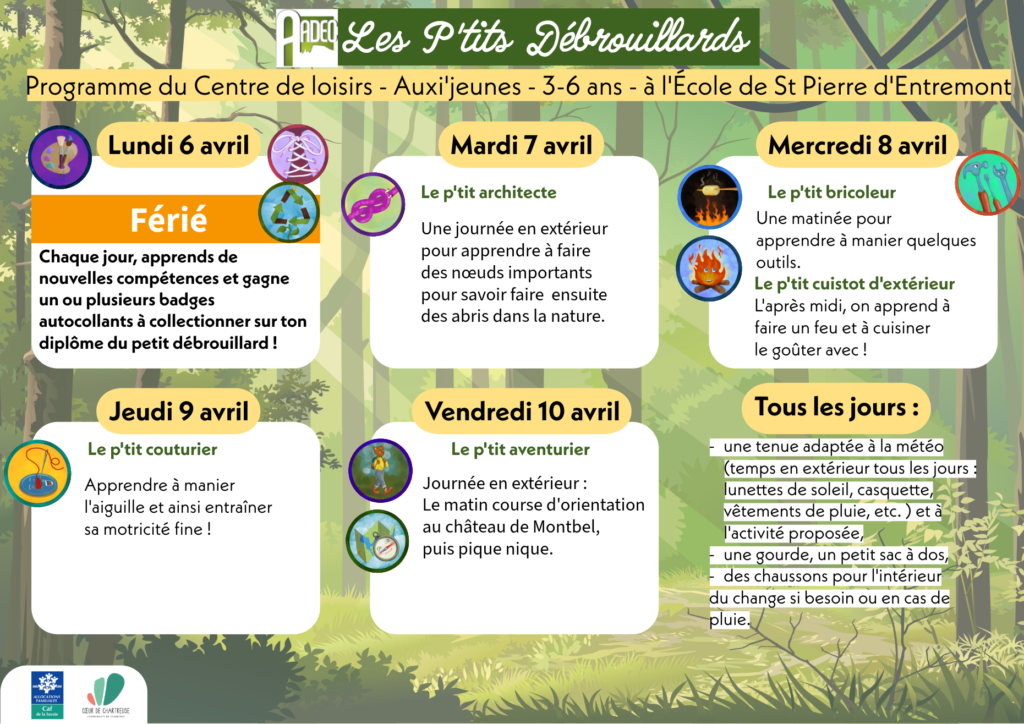 Attention changement : les 6-11 ans seront à la Maison Hermesende et les petits (3 à 6 ans) seront à l’école de Saint Pierre d’Entremont.