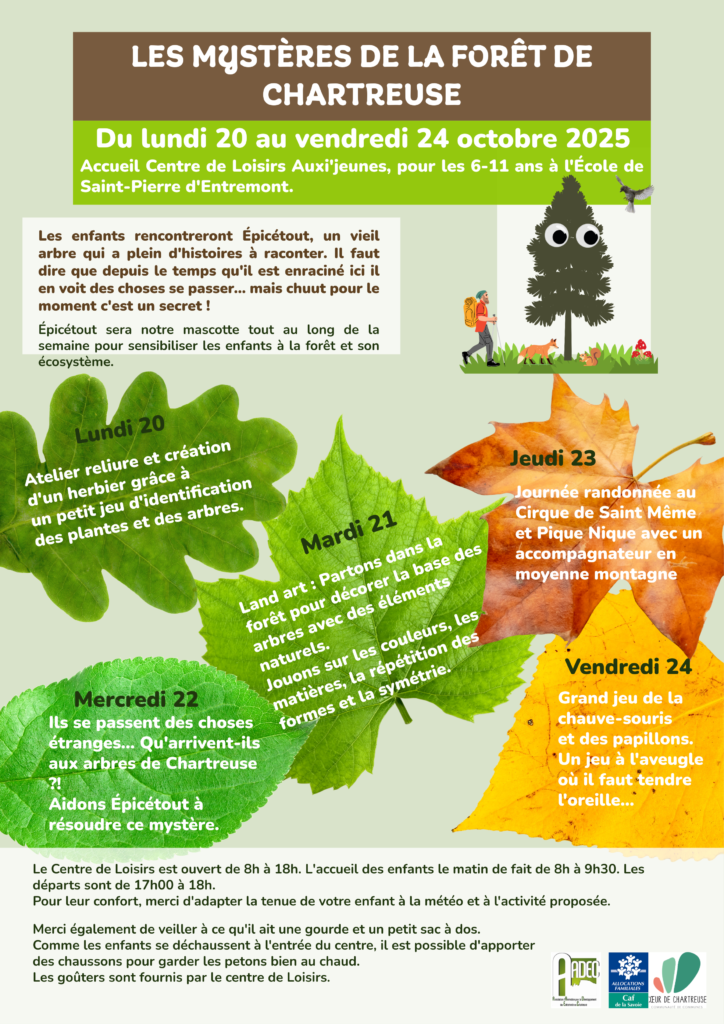 VACANCES D’AUTOMNE – DU 20 AU 24 OCTOBRE 2025