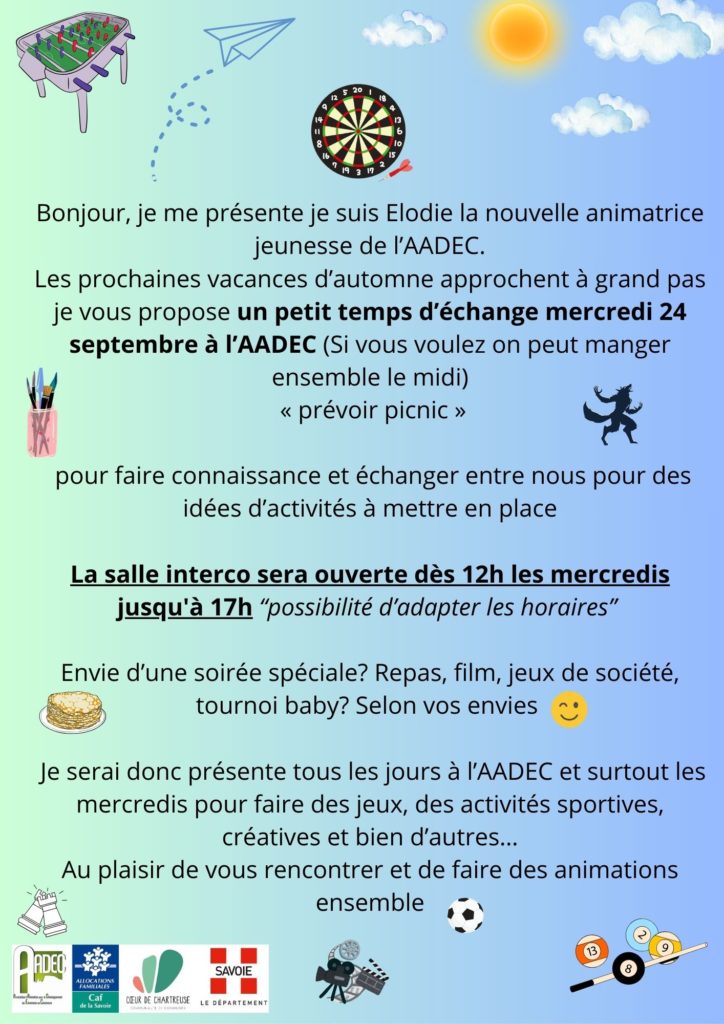 Tu souhaites participer aux activités et tu veux plus d’infos : par mail à jeunesse@aadec.fr