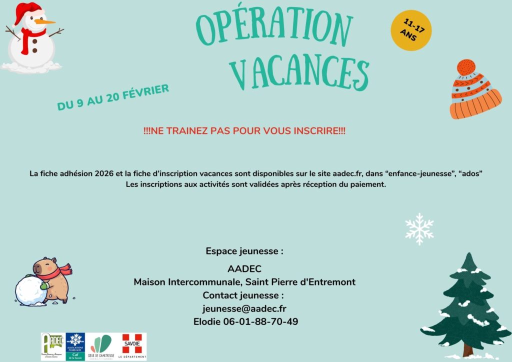 Informations et inscriptions au près d’Alexia , jeunesse@aadec.fr ou 0601887049