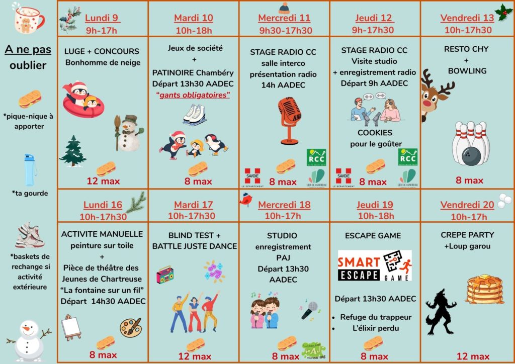 Programme des activités du mois de décembre 12-17h